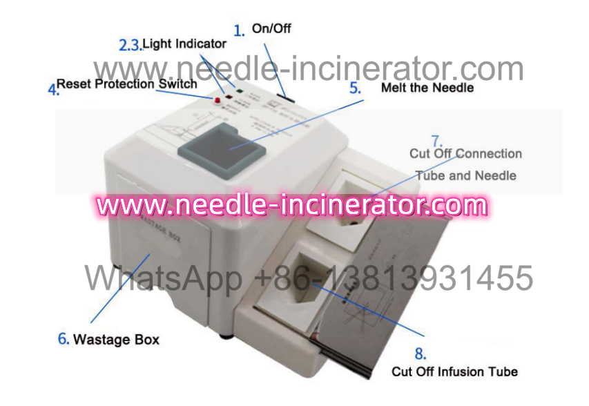 Sécurité immédiate : À l’usage, les professionnels (médecins, infirmiers) peuvent détruire les déchets coupants immédiatement après utilisation, réduisant ainsi les risques de dispersion ou de piqûres accidentelles (Needle Incinerator).
